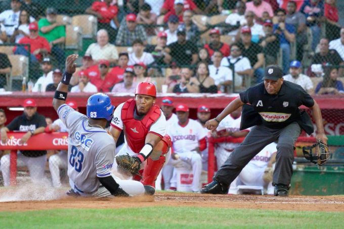 Los añiles marcaron dos vueltas en la primera entrada ante Johnny Cueto tras sencillo de Gustavo Núñez al prado derecho seguido de otro imparable al central por parte de Griffin Conine, lo que se combinó con un error del jardinero Alexander Canario, dejando ir la pelota hacia atrás, permitiendo que ambos corredores entraran en carrera.