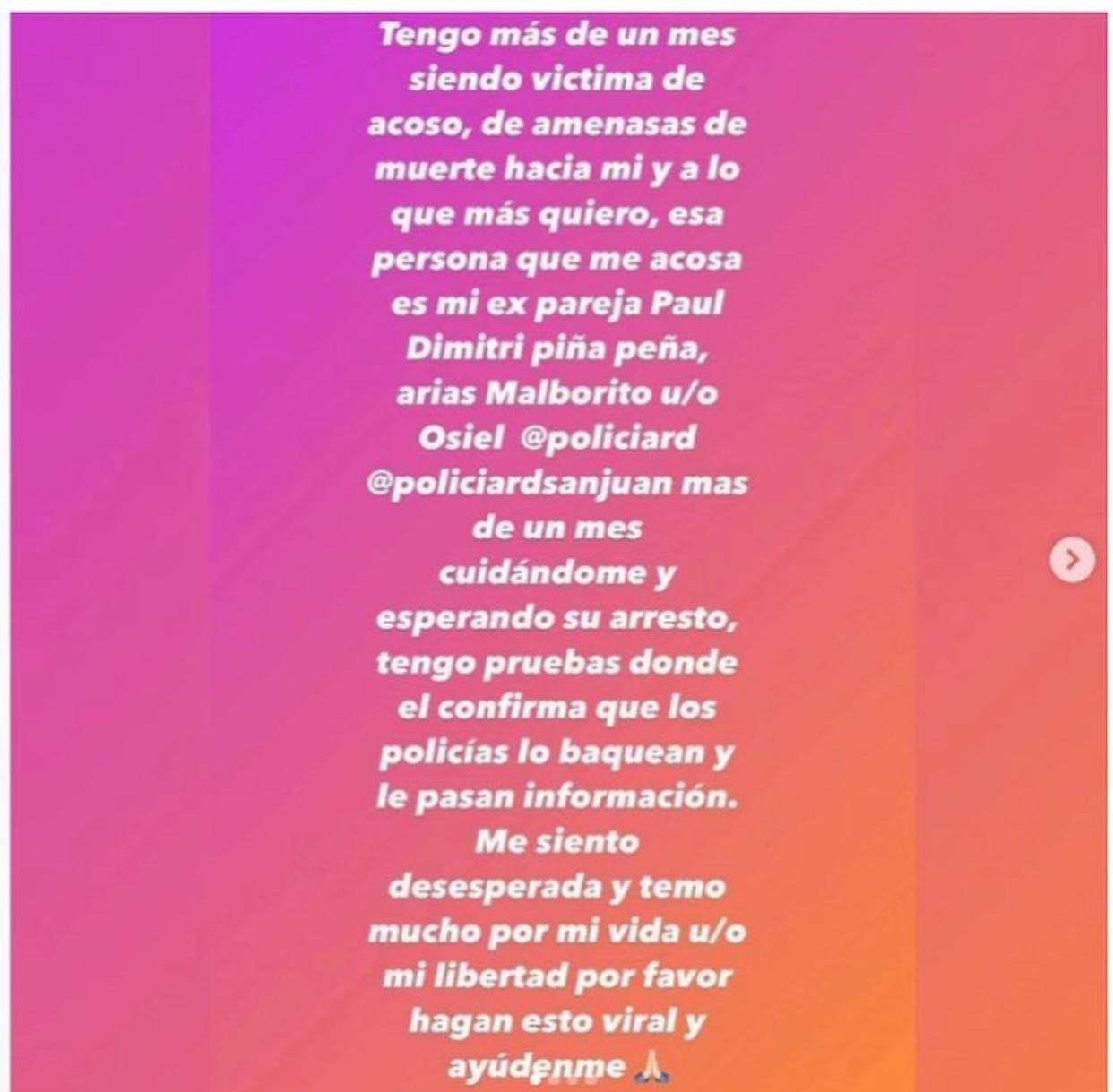 -Leonela Sánchez de 26 años de edad, denunció por las redes sociales recibir constantes amenazas de muerte por su ex pareja.