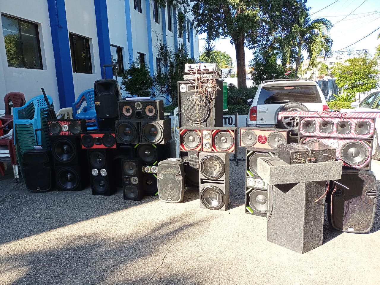 -La dirección regional oeste de la policía informó de decenas de bocinas y sillas incautadas durante operativo en diferentes sectores de San Juan durante el toque de queda.