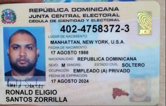 Según la cédula de identidad y electoral que portaba Zorrilla, dice ser de nacionalidad estadounidense, mientras que el cuerpo sin vida fue trasladado al instituto nacional de ciencias forenses (INACIF) en la provincia de Azua para determinar la causa de la muerte.