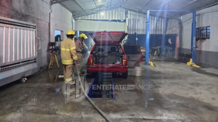 Se trató de un vehículo que se incendió mientras le era reparado el conducto del mofle, y ante la rápida acción de los bomberos lograron sofocar las llamas y evitar se propague en todo el centro de repuestos de mofles.