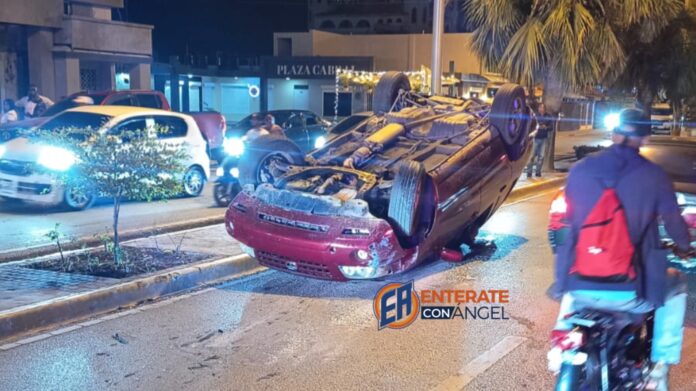 ENTÉRATE CON ÁNGEL —El conductor de un vehículo resultó ileso al sufrir volcadura luego de un rebase y perder el control en la circunvalación Noreste de San Juan de la Maguana, proximo al estadio municipal hermanos Suárez.