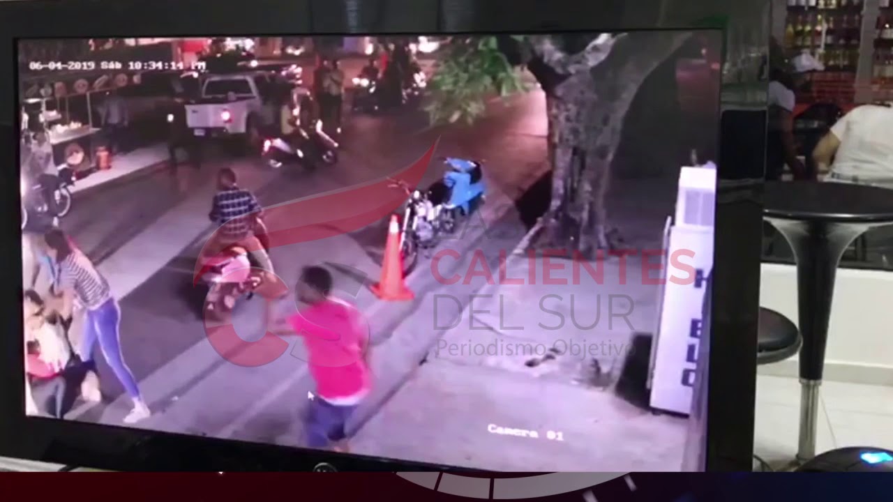 El rebú a botellazos, halones de moño y bofetadas, ocurrió a eso de las 10:30 de la noche frente a la Oficina Drink, el cual está ubicado en la calle Pedro J. Heyaime, frente a la plaza Francisco Alberto Caamaño de ese municipio.