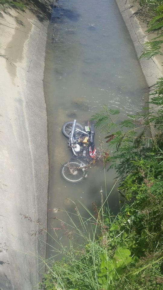 -Una motocileta marca suziki color negro fuen visualizada, en un canal por transeúnte en la carretera de sabaneta próximo de las aguas del arroyo Doña María entrada de Cañafistol donde aparentemente cayó un joven y sólo se encontró el motor y una gorra azul.