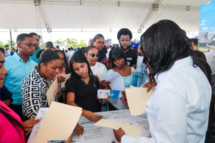 En su discurso central, Fernández anunció la disponibilidad de 500 vacantes disponibles y pidió a los jóvenes entregar sus hojas de vidas a las empresas.