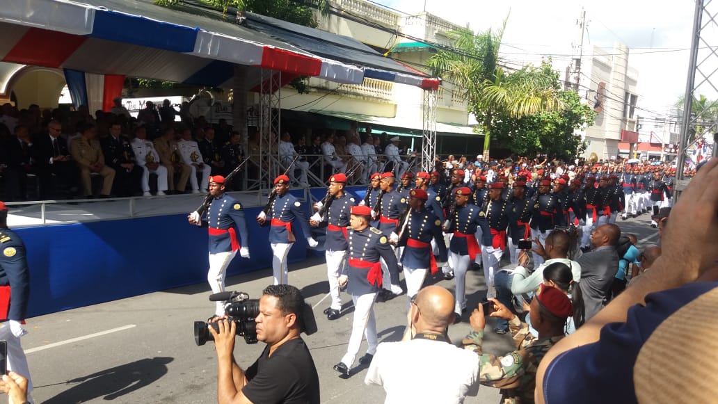 En el desfile se encuentra presente el Gobernador de la provincia de San Cristóbal, Julio César Díaz; el presidente de la Comisión Nacional de Efemérides Patria, Juan Daniel Balcácer.
