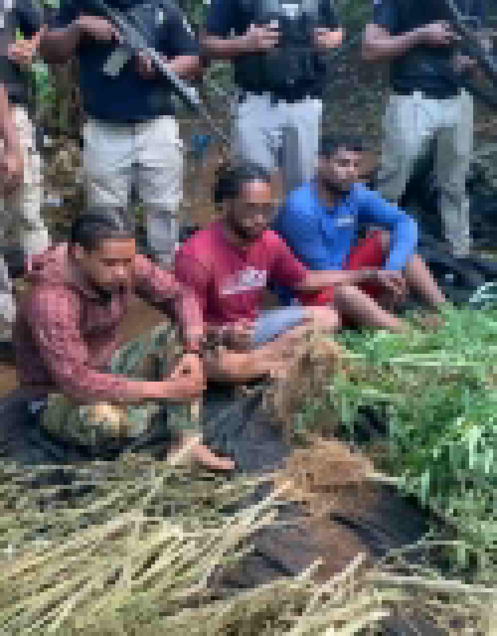 Erick Domingo Guzmán Beltre alias "El doctor" y Cesar Paulo Lebreau Guzmán, ambos de 29 años; asi como José Pérez, de 30, todos residentes en el municipio cabecera de Barahona, fueron detenidos por supuestamente utilizar dicha finca para cultivar y secar dicho vegetal.